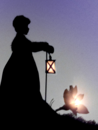 Mit Licht und Schatten spielt Angelika Deffner eine besinnliche Geschichte von einem Kind, das sich auf den Weg macht, um ein Licht für seine Laterne zu suchen.