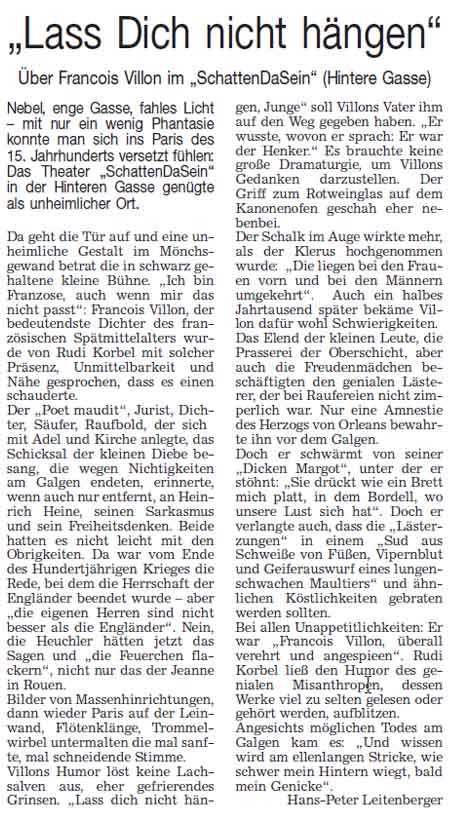 Startseite Theater Raum Eintrittskarten Anfahrt Kontakt Herzlichen Dank! Presse Impressum | Aktualisiert am 10.12.2015 | ||